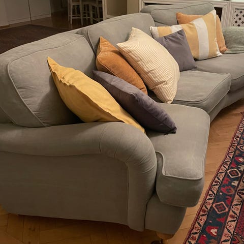 Katter finns i hemmet men katterna har klösträd och annat så dom klöser ej på soffan.
