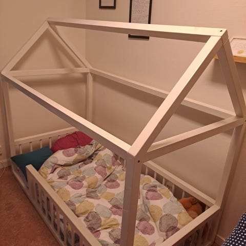 Vi har inte använt ribbotten utan valde att ha madrassen direkt på golvet så att lillan enkelt kunde gå upp i sängen själv.