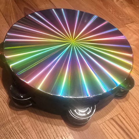 Snygg och lättspelad handhållen tamburin i halvmåneform med dubbelradiga metallbjällror som ger ett fylligt och klart ljud.