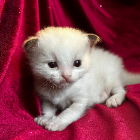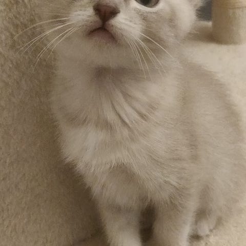 Jag är en kattunge, hane, (ragdoll/heliga birma) som söker nytt hem. Jag är redo och flytta nu (13 veckor gammal).