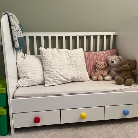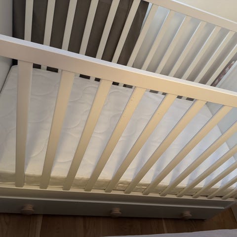 Säljes inklusive madrass och madrasskydd.