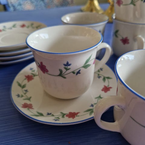 Jättefin kaffeservis som inte kommer till användning. Finns i Enköping. Kan skicka men jag ansvarar inte för om de kommer fram hela eller inte. Packar såklart in dom de bästa jag kan.
