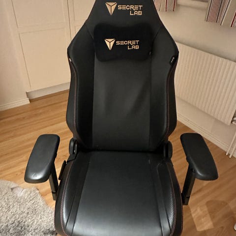 Supertrevlig stol, men inget gamingrigg längre så då fyller stolen ingen funktion. Har tyvärr haft kattungar och det syns på ryggen då lite trådar sticker ut. Inget som inte går att fixa.