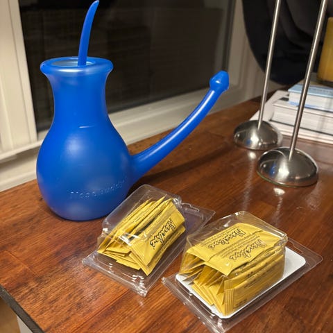 Enkel nässköljning med saltvatten. En naturlig hjälp vid näs- och bihålebesvär. Använd vid förkylning, allergi och irriterad näsa.