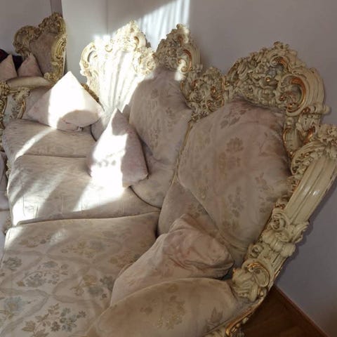 Gammaldags mönster i guld och mörkbrunt med fina detaljer