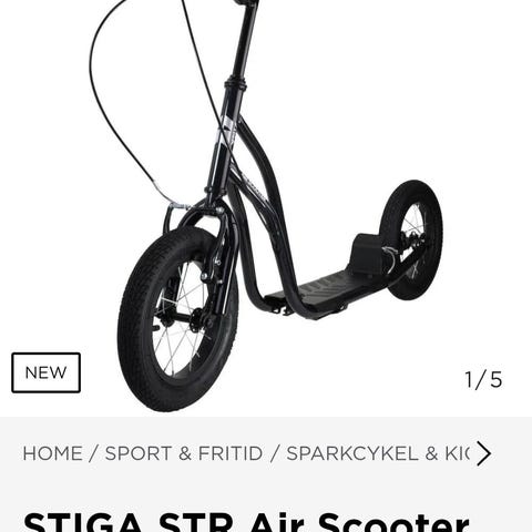 Vi säljer en helt ny Stiga Air Scooter 12" Sparkcykel. Hjul med luft i gör att man kan åka på olika underlag, torra som blöta. Har handbroms för både fram- och bakhjul samt ett stadigt cykelstöd.