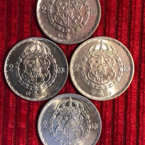 2-kronors 40% silvermyntSveriges Kung 2 Kronor mynt från år 1946 med motiv av Gustav V. Myntet är tillverkat i 40% silver och har ett motiv med Sveriges kung och riksvapnet.