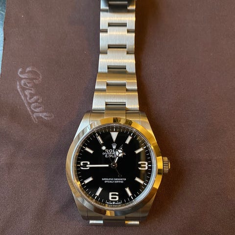 En fin Rolex Explorer 40 mm från 2023 säljes.