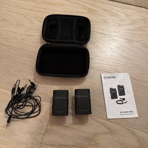 Säljer ett komplett trådlöst mikrofonsystem, perfekt för vlogging, intervjuer och YouTube. Ger kristallklart ljud och är extremt enkelt att använda.