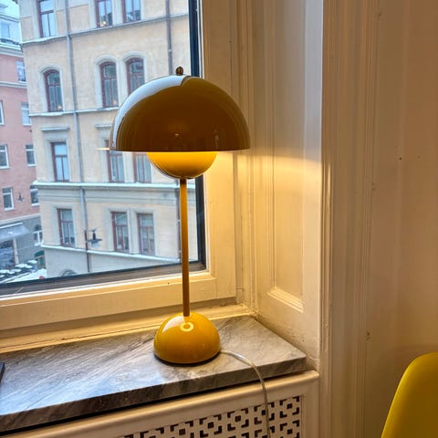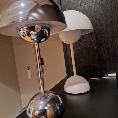 &Tradition Verner Panton Flowerpot bordslampa i ljusblå färg.
