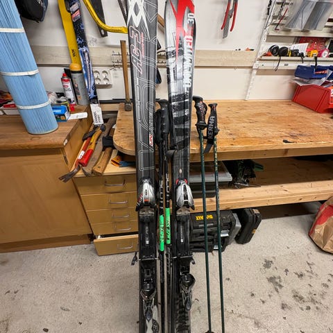 Atomic Maverick 83 RX är ett par all mountain skidor med bindningar och tillhörande stavar (twin-tip). Skidorna har en längd på 165 cm. Använda vid 5 olika tillfällen. Synligt använda (normal slitage)