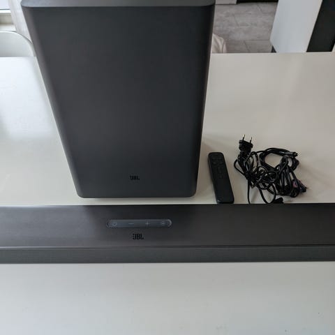 Otroligt bra ljud för filmtittande med mulrande och vibrerande bas, inte ens vågat köra på max. Med avtagbara sidehögtalare kan man få surroundljud med atmos känsla då det är ett 9."4".1 som har högtalare som skjuter upp ljud också.