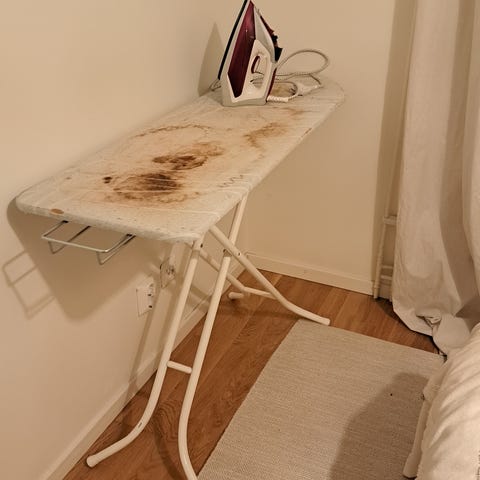 Stabilt och praktiskt strykbord med en rejäl avställningsyta. Höjden på strykbordet är justerbar på ett enkelt sätt. Gillar man inte överdraget är det lätt att byta till ett annat.
