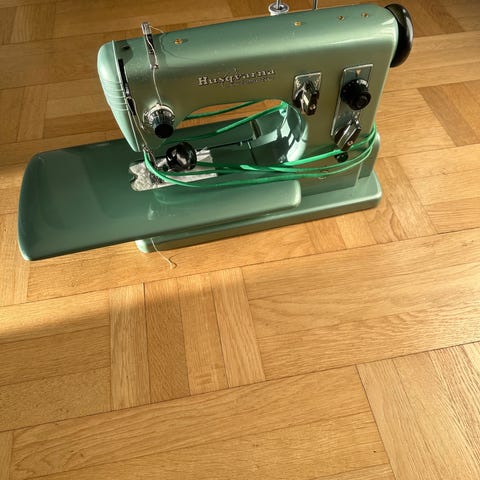 Säljer en klassisk Husqvarna Zig-zag (Type 19E) i fin retrogrön färg. Testad och fungerar felfritt – syr som den ska och går jämnt.