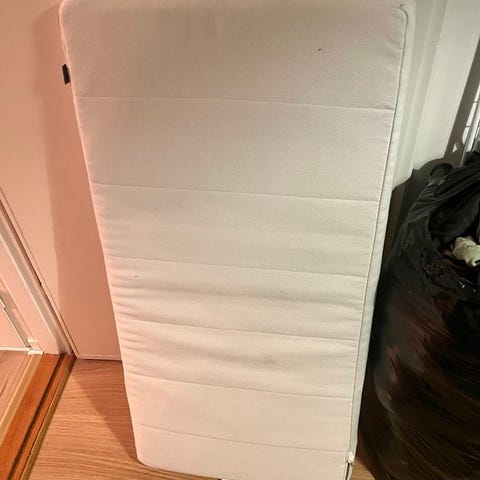 Madrass till spjälsäng från IKEA, modell Krummelur. Lite ludd och så på överdraget, annars i mycket fint skick och använd endast ett fåtal gånger.
