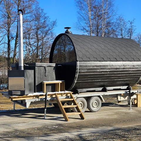 Sveriges enda badtunna som är monterad på en lätt lastbil! Badtunnan rymmer 8-10 personer. Perfekt till svensexan, möhippan, konferensen, festen, afterwork eller för att lyxa till helgen. Badtunnan har en 50 kW kamin, så det går fort att värma upp. Du hämtar lastbilen själv och kör hem den till dig eller varför inte till någon fin sjö.