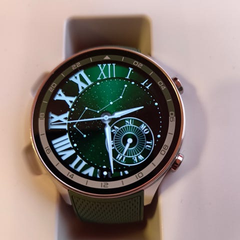 OnePlus Watch 3 smartklocka med 46mm urtavla i titanmaterial. Utrustad med Bluetooth och WiFi för anslutning. Modellen är Obsidian Titanium.