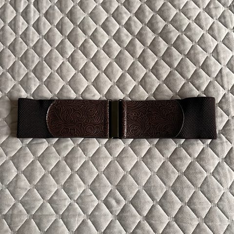Stilrent bälte i mörkblå färg med snyggt H-format spänne i guldfärg. Storlek 110. Passar bra till både vardag och finare tillfällen. Bältet är i fint skick och ger en exklusiv look.