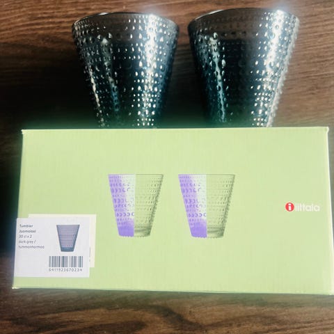 Iittala Kastehelmi glas i rökfärgat grått, 2st 2-pack. Dvs 4 st glas. Glasen är på fot och har en dekorativ bubbeldesign. Passar till både vardag och fest. Helt nya endast uppackade och diskade.
