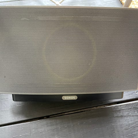 Sonos Wireless Music System högtalare i svart. Utrustad med anslutningar för hörlurar och nätverk. Designad för trådlös musikuppspelning.