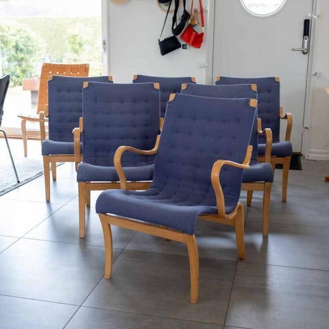Bruno Mathsson Pernilla i ok men absolut använt skick. Som syns på bilden avvikande färg på nackkudden. Den kan absolut användas som den är men vill man ha en ny fåtölj så får man köpa en ny…