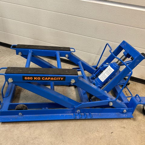 Lyftbord i röd färg. Passar för olika typer av lyft- och verkstadsarbete. Robust konstruktion för stabil användning.