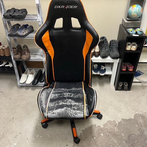 Den fungerar som det ska ingen skada eller repor på stolen nästan ny