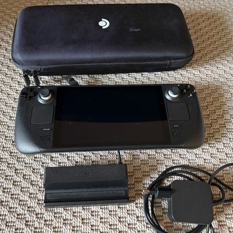 Laddare, väska och steamdeck ingår.