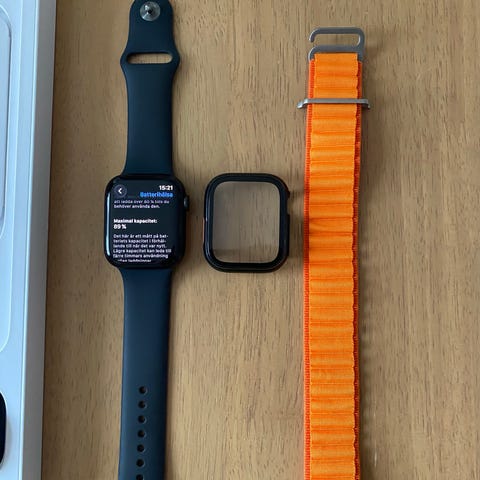 Apple Watch Series 8 41 mm smartwatch i vitt. Ej cellular. Produkten levereras med originalförpackning, extra band och laddare.