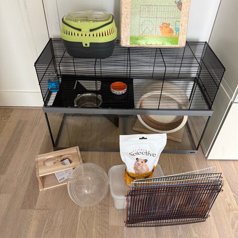 Säljer en hamsterbur i gott skick. Buren är rymlig och har två våningar, vilket ger gott om plats för hamstern att röra sig och utforska.