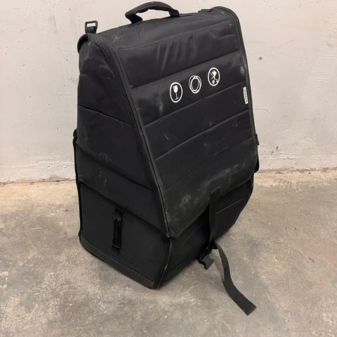 Bugaboo transportväska till barnvagn i röd och svart färg. Har varit otroligt användbar. Kan användas som en del av Bugaboos barnvagnssystem. Tips! När ni flyger kan ni packa både barnvagnen och massa andra saker i transportväskan.