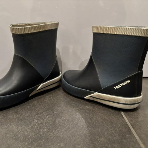 Mörkblå Tretorn barnstövlar i storlek 24. Stövlarna är i jättebra skick. Varmfodrade med justerbar snölås och en stadig sula. Sula och häl har extra bra grepp. Perfekta till kallare väder.