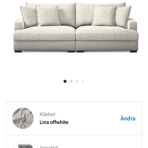 Önskar köpa en Mio Rossi 3-sits soffa med tyget grand rust/beige/khaki i gott skick.