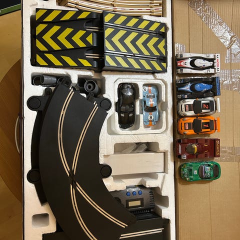Scalextric sparsamt använd med xtra banbitar.