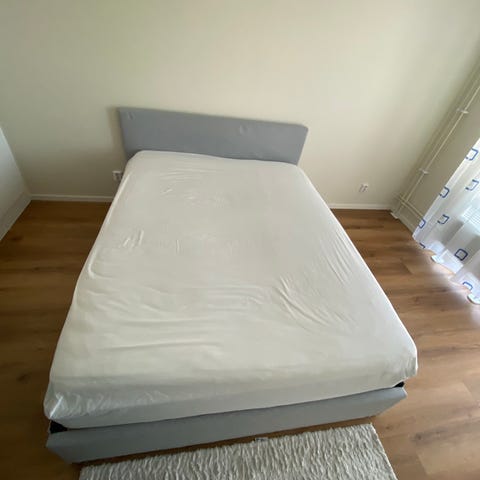 Inköpsdatum var den 8 april 2025. Sängen är använd men är i mycket gott skick. Madrassen har aldrig sovits direkt på utan med en Tempur-madrass ovanpå. Sängen är för närvarande demonterad.