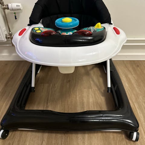 Babybay Barnstol i svart färg. Barnstol med ram i metall och svart tygsits. Passar för barn och kan användas som sittplats i hemmet.