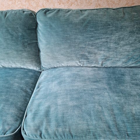 Lindblomsgrön mycket bekväm soffgrupp från Bröderna Andersson. Svensktillverkad, riktig kvalité, ej nedsutten. Stått i "finrum" med skyddande tyg på dynorna. Med avtagbar klädsel på alla sittdynor.