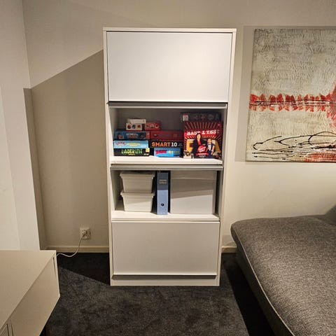 Inrett med 3 hyllplan som går att ändra höjd på.