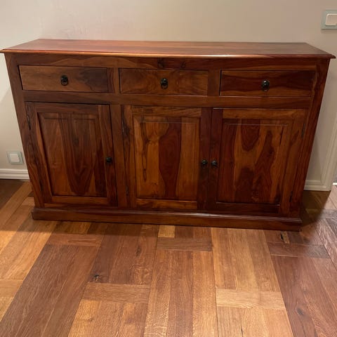 Säljer en IKEA HEMNES skänk i vit färg, tillverkad i massiv furu.