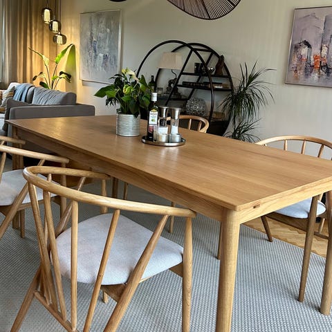 Nyrenoverat matbord med 6 stolar + iläggsskivor