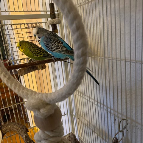 Undulater med bur och massa tillbehör!