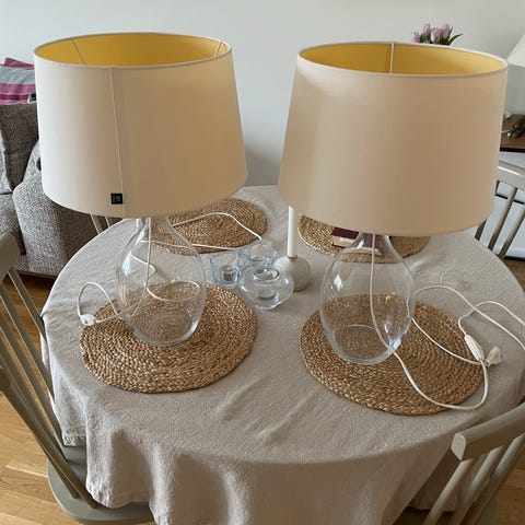 Två bordslampor. Lågt pris då skärmarna har lite defekter, se bilder. Går såklart byta ut skärmarna om man tycker att de inte funkar alls.