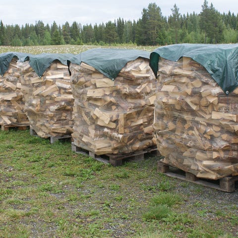 Sonen har jobbat på vedbacken och säljer nu björkved