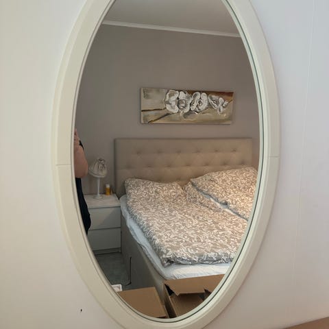 Rund spegel med vit ram. Spegeln har en enkel och minimalistisk design som kan användas för inredning i olika rum. Den runda formen gör den lämplig för att reflektera ljus och skapa en känsla av rymd. 18, 23, 28 cm