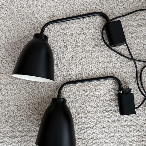 Säljer två vita skitsnygga Caravaggio vägglampor. Kan köpas var för sig.