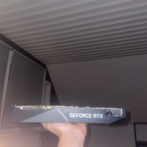 EVGA GeForce GTX grafikkort med fläktkylning och bakplåt. Grafikkortet är avsett för stationära datorer och har flera fläktar för kylning.