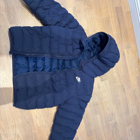 Nike vinterjacka unisex i storlek 122/128, svart färg och tillverkad i polyester. Jackan har huva och är anpassad för barn.