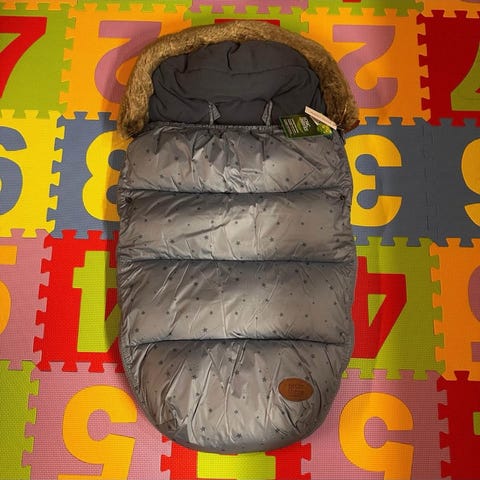 Petite Cherie åkpåse med mönster. Passar för att hålla barnet varmt och skyddat i barnvagn under kalla dagar.