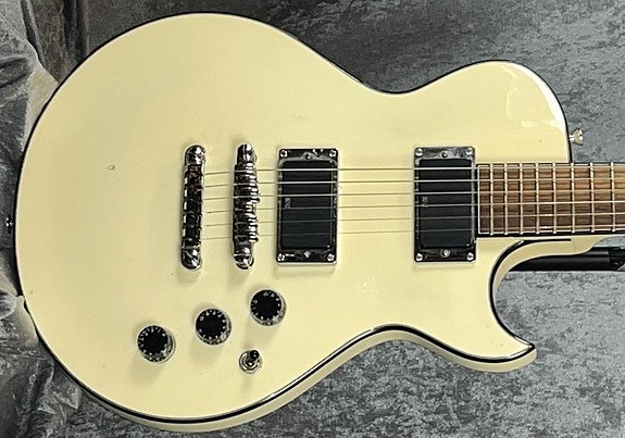 Mycket sällsynt Custom color Olympic White, nu mycket gulnad, coolt! Lönnhals med sadelbredd på 40,9mm. Sköldpadde-plektrumskydd. ALLT original! Originalfodral. 4231 gram med båda kåporna på.