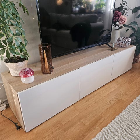 Säljer nu min tv bänk från ikea serien bestå, lådor upp till och dörrar nedtill med hyllplan inuti, även en glasskiva på toppen!✨